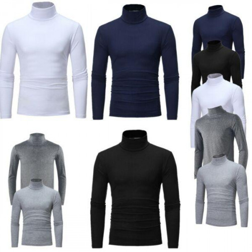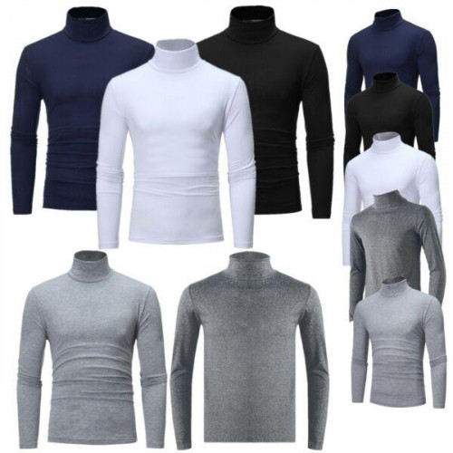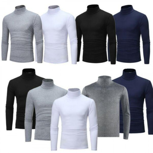 Mens Turtleneck Pullover Long Sleeve Jumper Top Warm Casual Slim Fit T-Shirt
