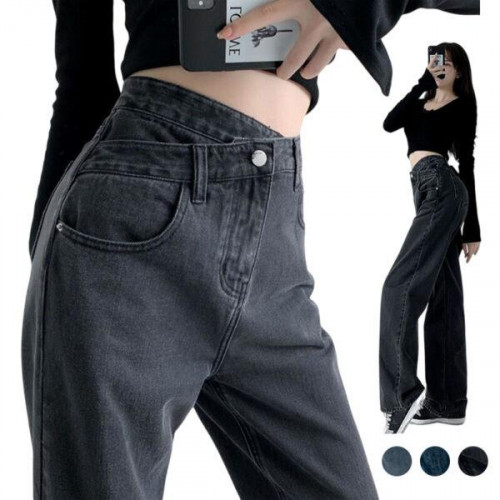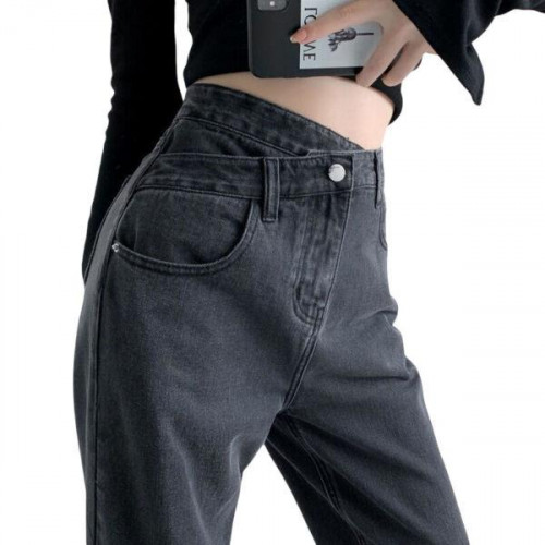 Womens Jeans Wide-legged Trend Pants Femme Black Blue High Waist Trousers