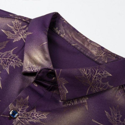 Moda Camisa Para Hombre de Vestir Mangas Largas Hojas de Arbol Ropa Fina