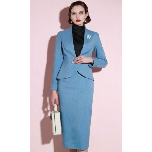 Exquisite Women Suit Dress Blue Slim Jacket Skirt Business Party Banquet Custom
