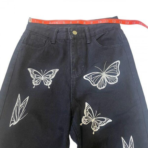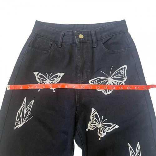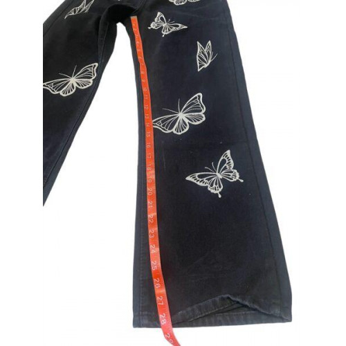 Black Butterfly Print high rise Relaxed wide leg jeans size 26