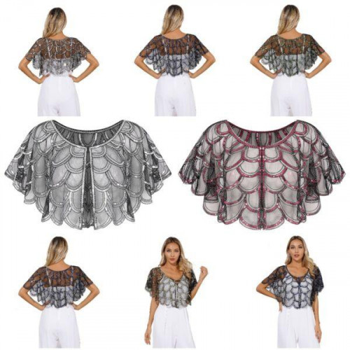 Womens Cover Up For Dress Cape Beads Bolero See-Through 1920s Shawl Sequin