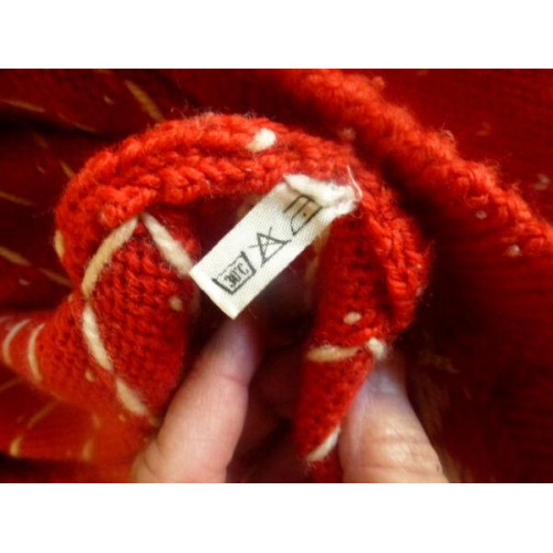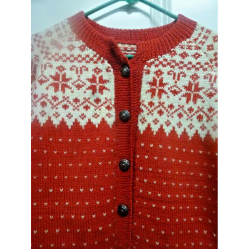 Vtg Christmas Wool Women's Sweater 100% Wool Handmade Size Medium Red & White
